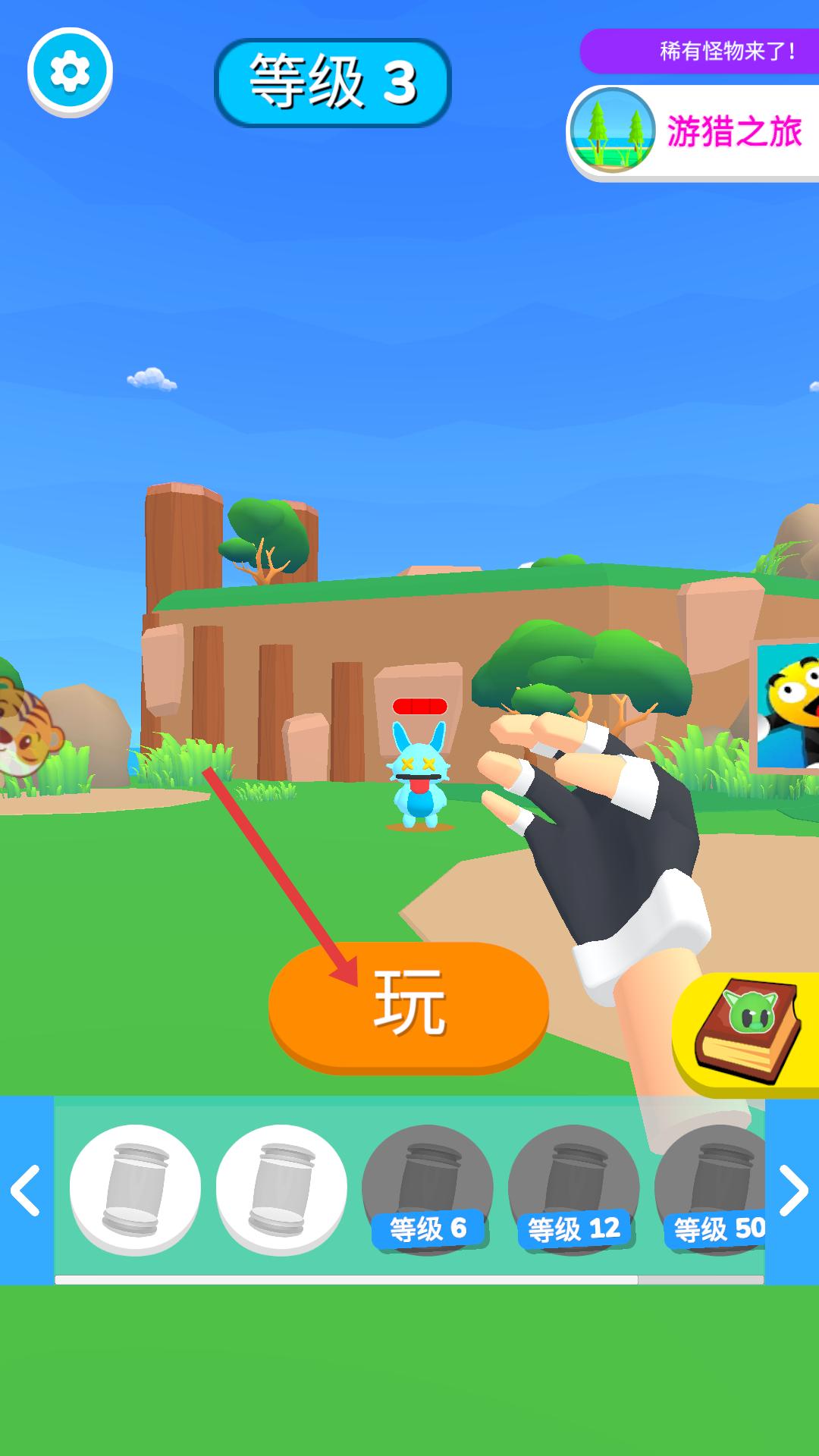 1、點擊界面中間橙色的玩按鈕,進入等級3的游戲場景,準備開始捕捉怪物的挑戰。