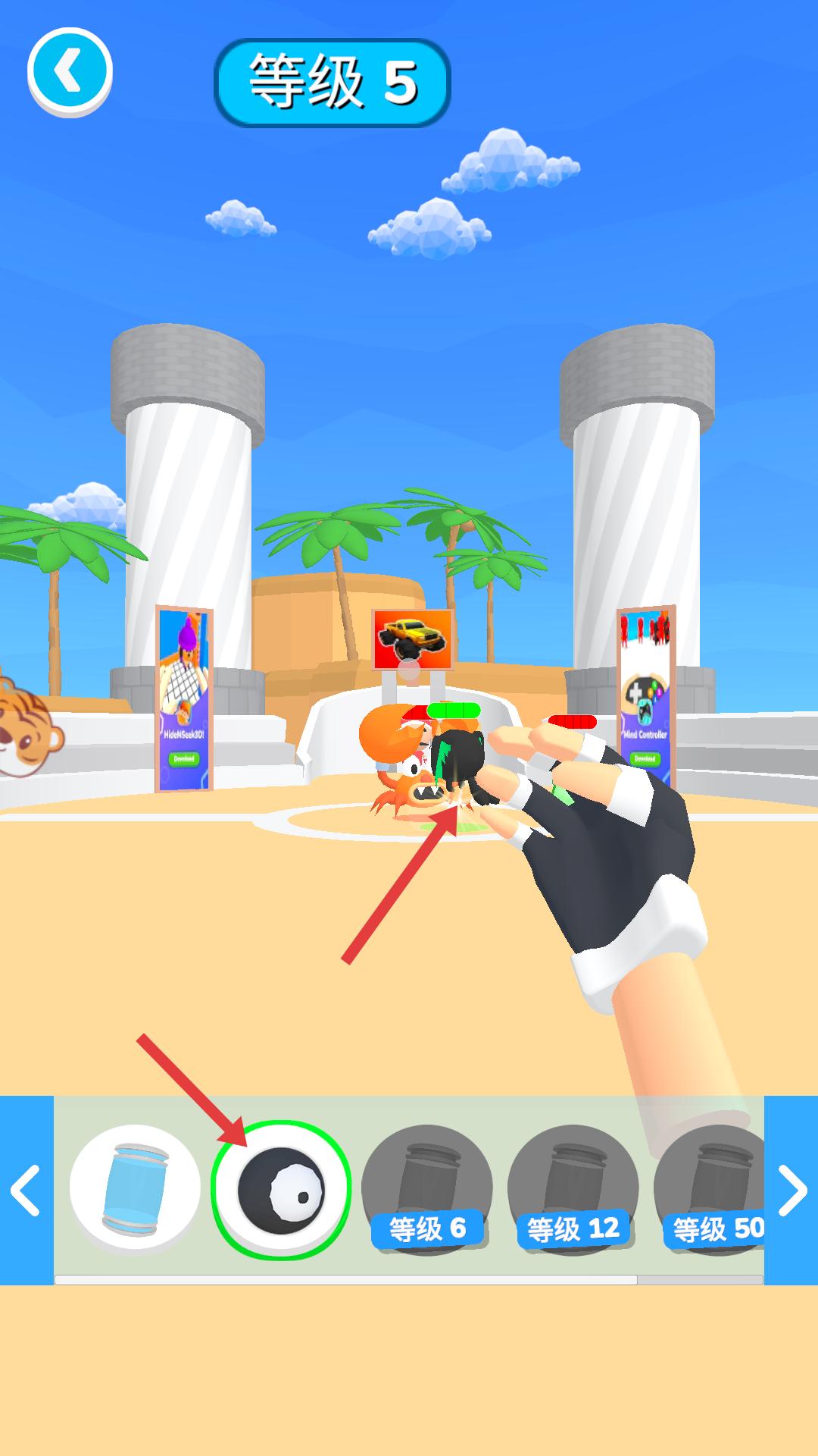 4、在等級5的場景,選擇下方怪物球釋放怪物,瞄準對應的怪物進行精準攻擊。