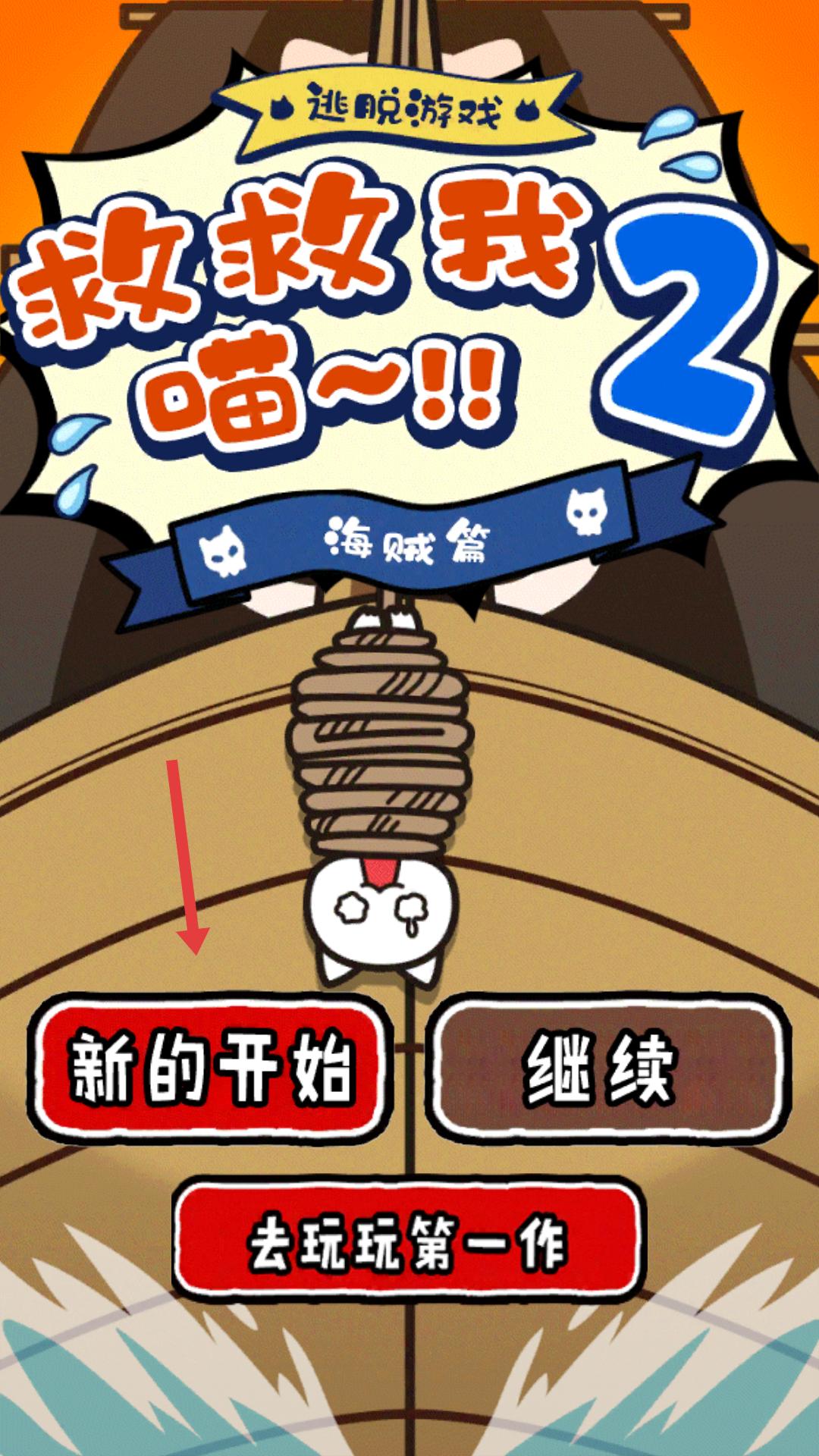 1、游戲初始界面有新的開始按鈕,點擊該按鈕,可開啟新的游戲進程,進入游戲劇情,開始冒險,體驗解救貓咪的故事。