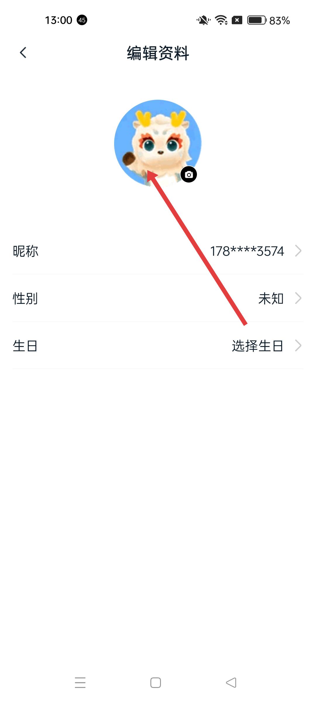 4、進入編輯資料界面后,點擊頭像區域,可選擇更換頭像,還能設置昵稱、性別、生日等信息,完成個人資料編輯。