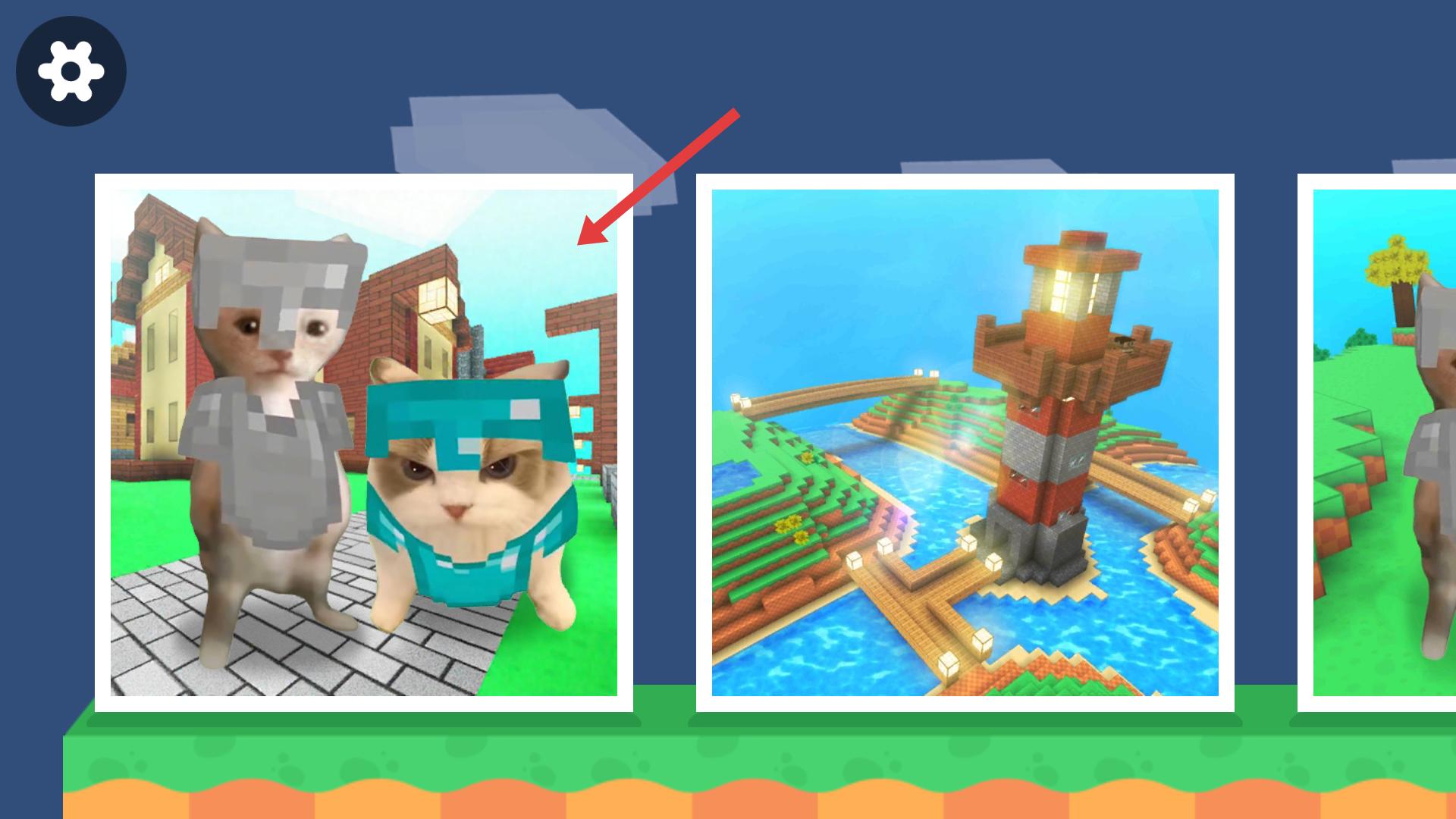 1、游戲初始界面,可選擇帶有戴裝備貓咪的場景,進入后能開啟建造等相關游戲內容。
