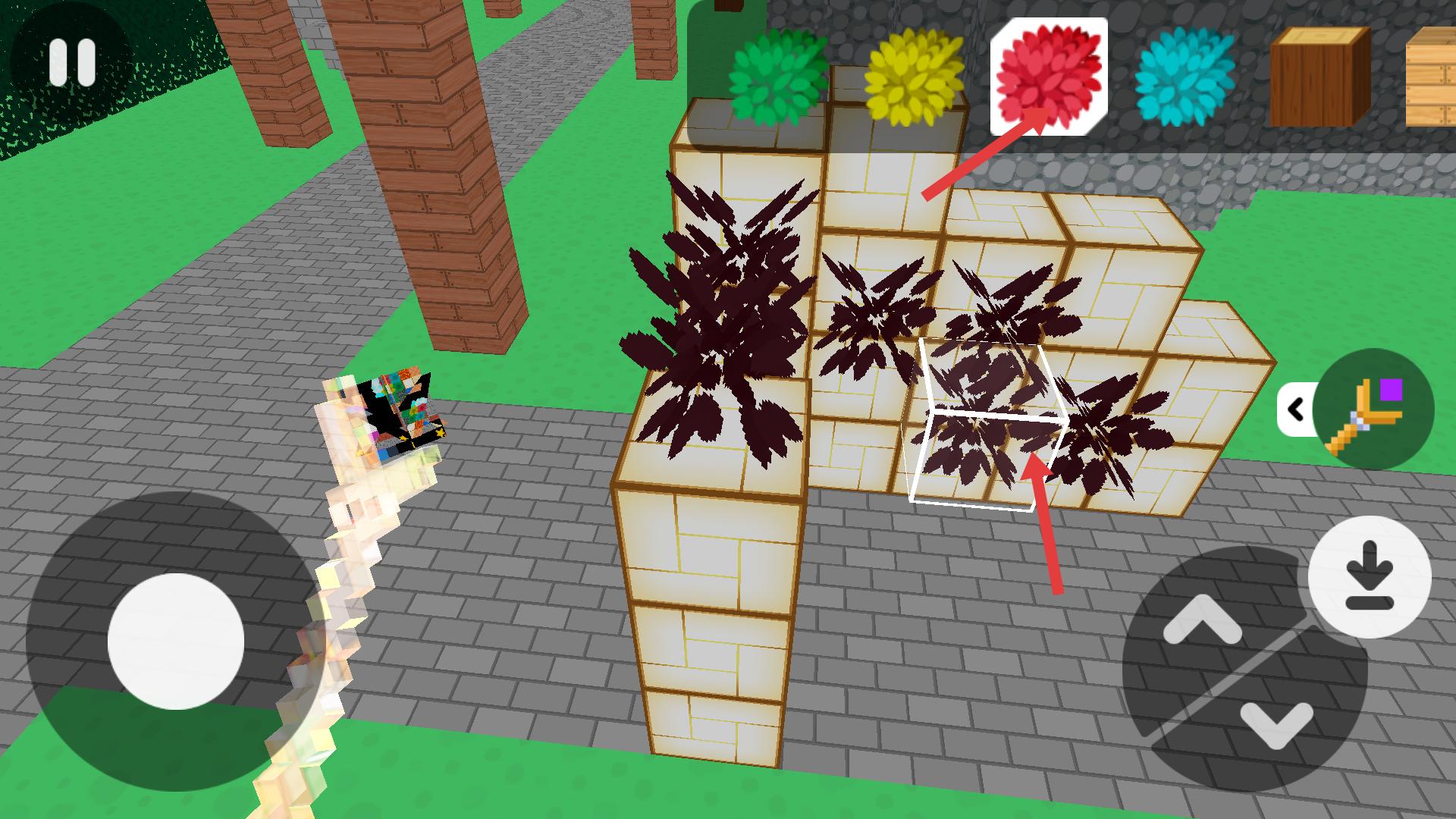 4、之后選擇紅色植物,將其種植在搭建好的方塊結構上,為場景增添植物元素,讓整體布局更具生機。