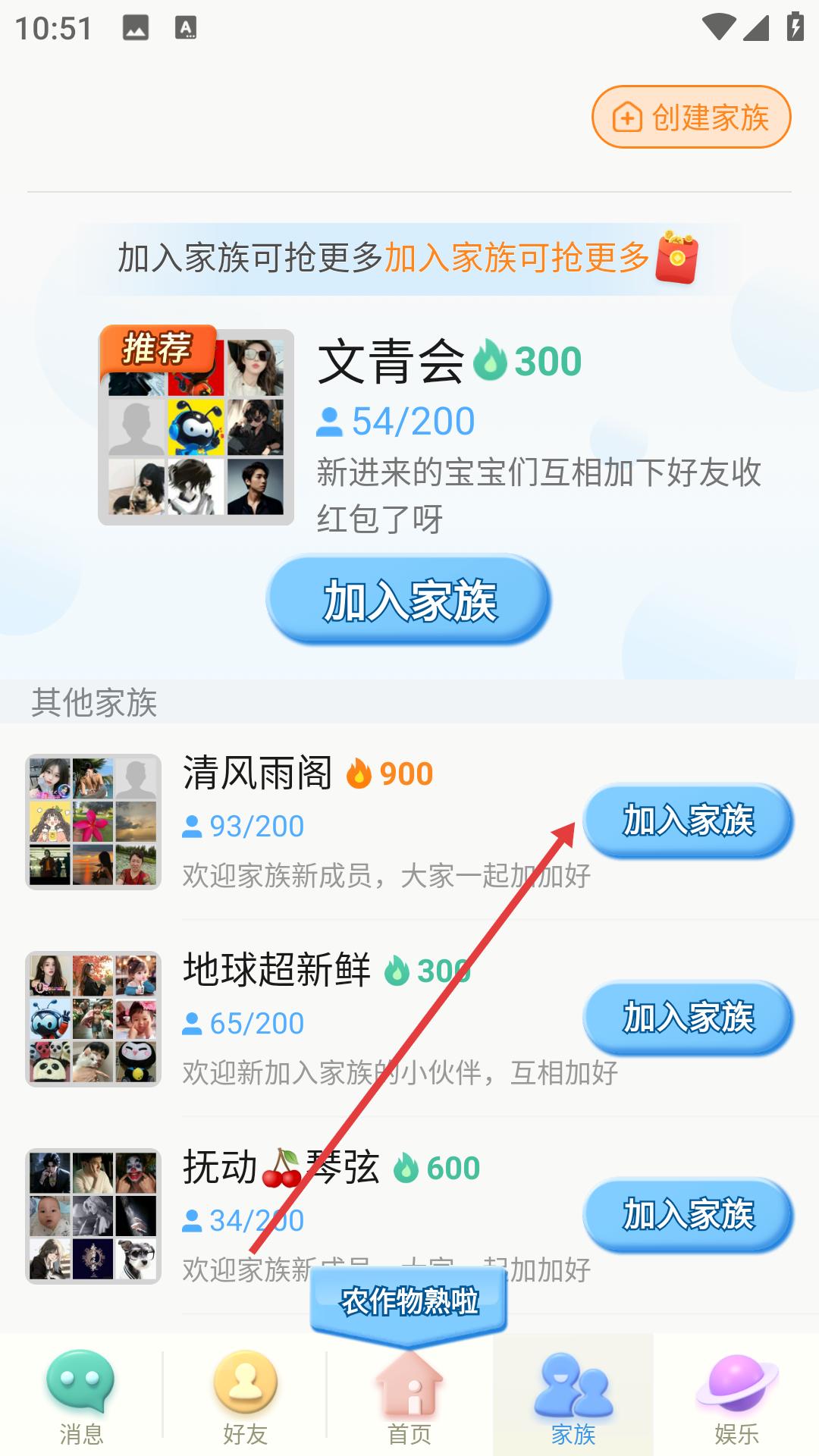 1、打開派派APP,進入家族頁面,瀏覽推薦的家族列表,選擇一個感興趣的家族,點擊加入家族按鈕,申請加入該家族。