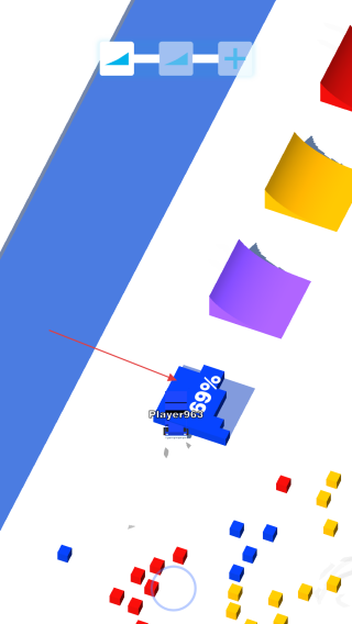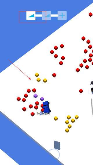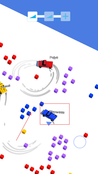 3、操控皮卡賽車靠近并收集它們,這些道具放在相同顏色的區域,直到達到百分之100即可形成坡道。