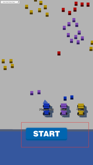1、玩家下載游戲之后然后點擊進入在游戲主界面,點擊START藍色按鈕,進入皮卡賽車大戰的游戲場景。