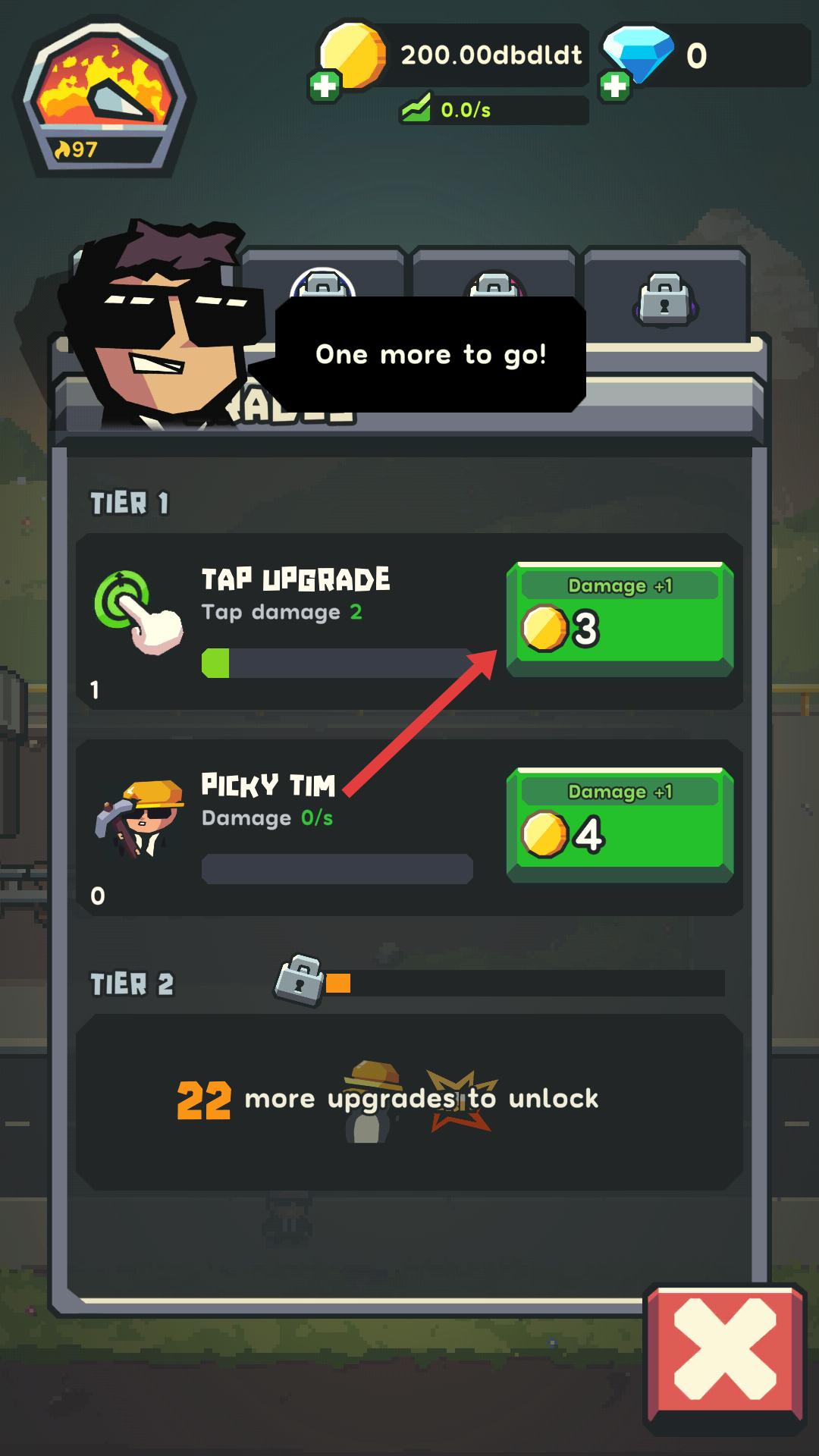 3、獲得金幣后,可進入升級界面,花費金幣能升級點擊傷害等屬性,讓后續采礦更高效。