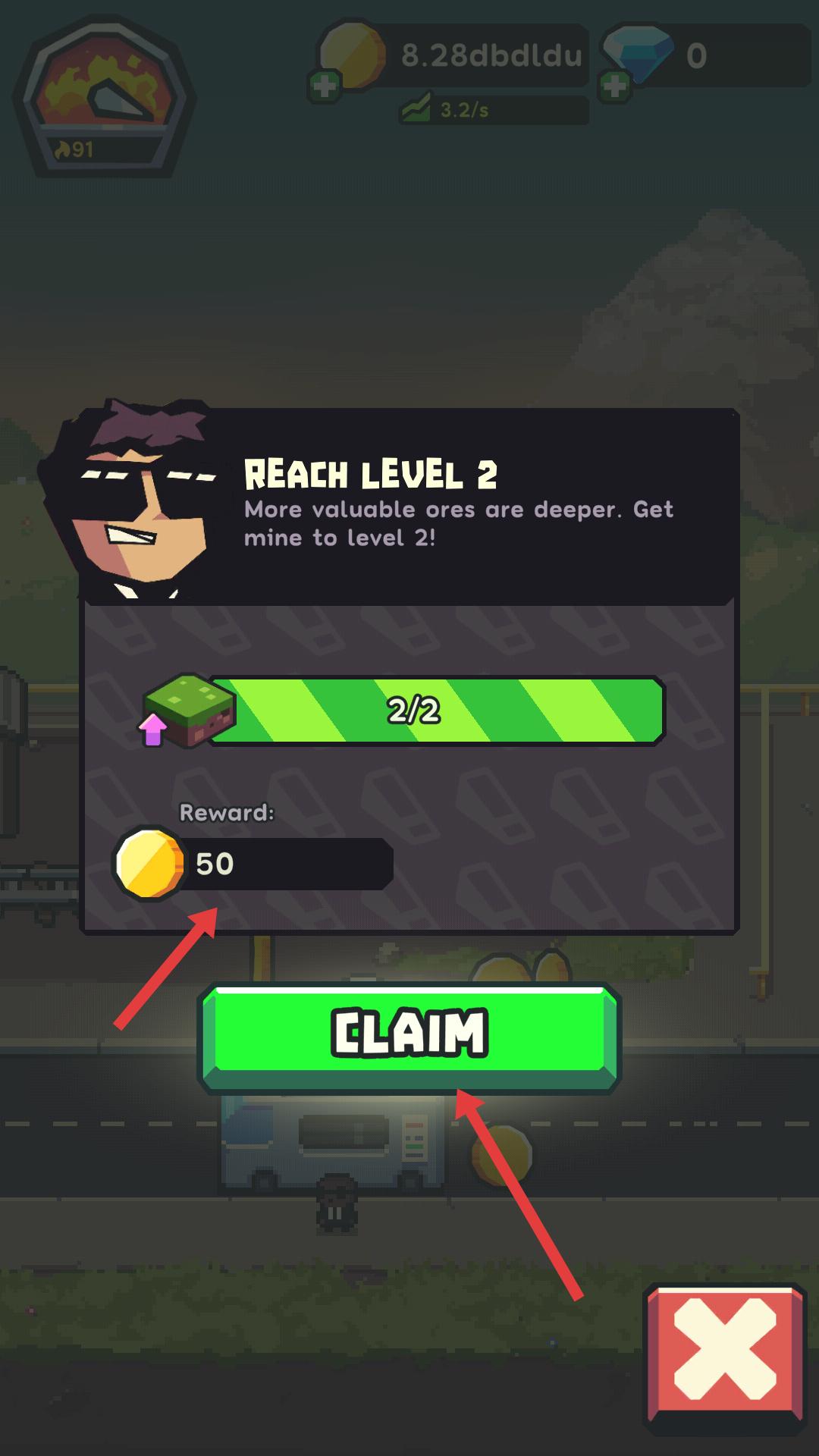 4、當達成目標后,界面會彈出獎勵提示,點擊CLAIM按鈕,就能領取對應的金幣獎勵。