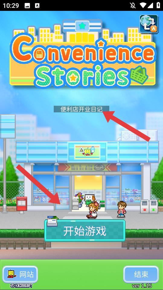 1、進入游戲,看到Convenience Stories標題和便利店畫面,點擊開始游戲,開啟便利店經營之旅。