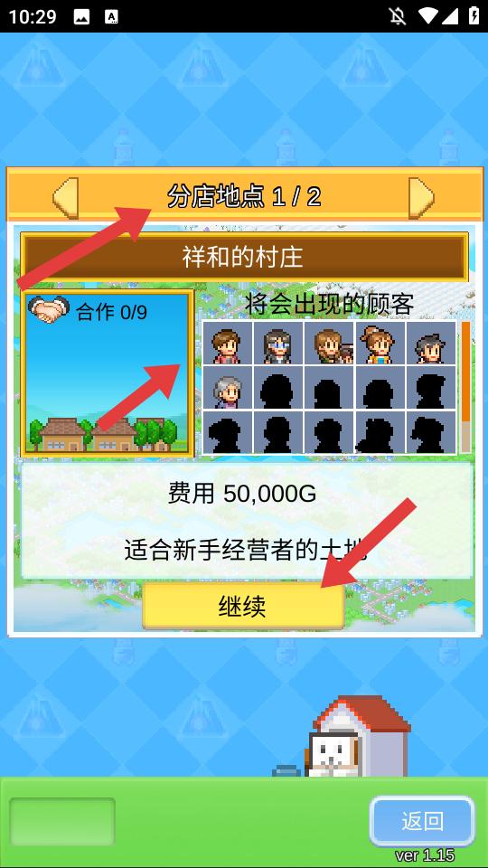 3、接著選擇分店地點,能看到不同地點及對應的顧客,費用等信息,選好后點擊繼續,推進分店開設流程。