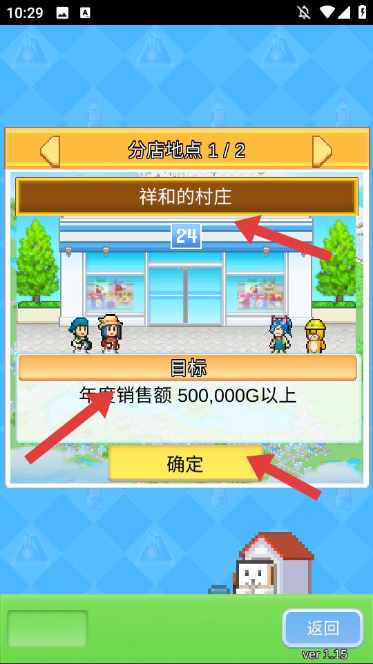 4、分店地點確定后,會顯示經營目標,比如年度銷售額達到一定數值,點擊確定,正式開啟分店經營。