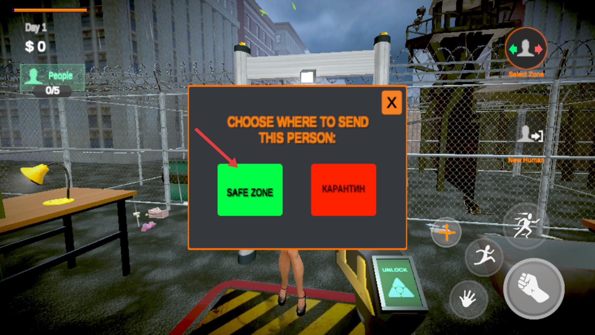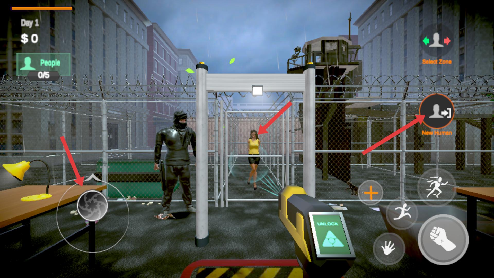 1、在圍欄區域,可看到有人員待處理,點擊右側New Human標識,能引入新人員,同時左側可操作角色移動,開始人員管理相關流程。
