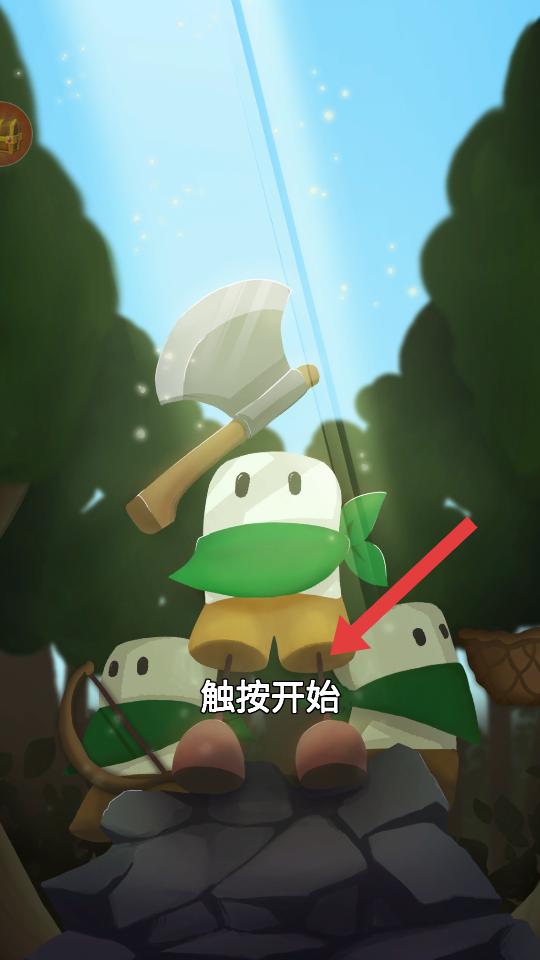 1、進入游戲,看到有角色和觸按開始提示的界面,觸按開始,就能開啟森林冒險之旅,準備進入存檔選擇環節。