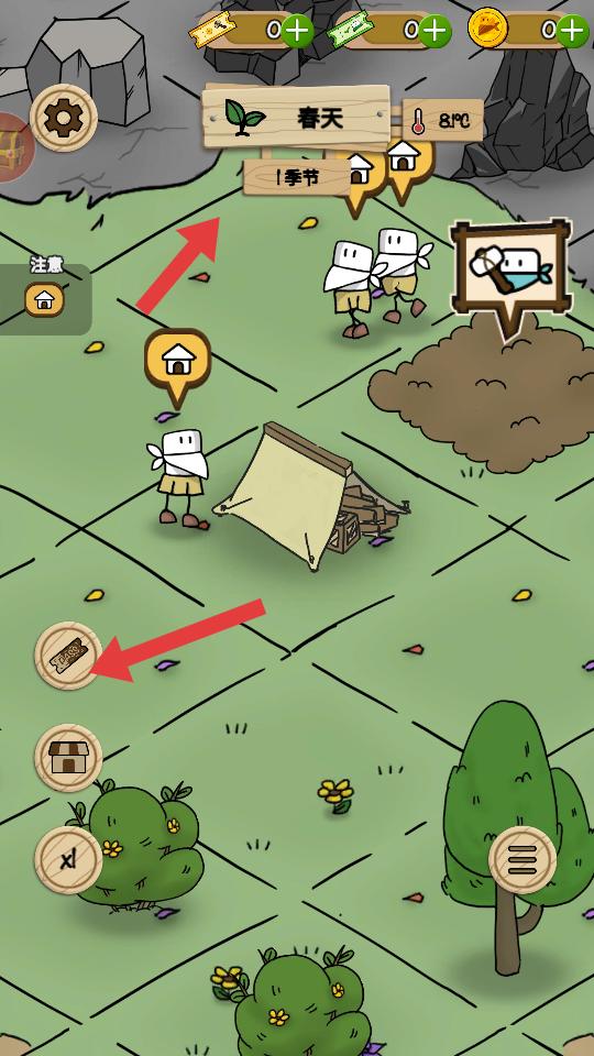 4、游戲中,在森林場景里,能看到季節,溫度等信息,利用相關功能按鈕,探索場景,完成冒險任務,體驗森林生活。