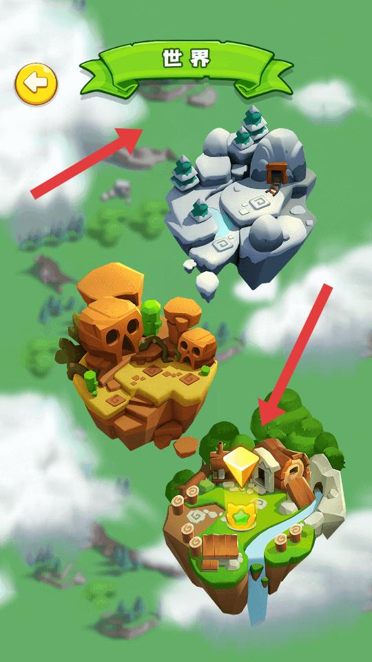 1、進入游戲,看到有不同風格島嶼的世界界面,選擇想要探索的島嶼,就能進入該島嶼對應的場景,開啟植物保衛的冒險。