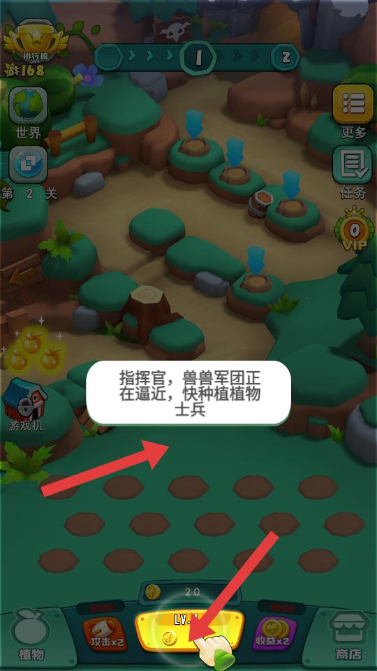 3、進入關卡場景,收到軍團逼近的提示,要趕緊種植植物士兵,利用植物抵御敵人進攻,守護陣地。