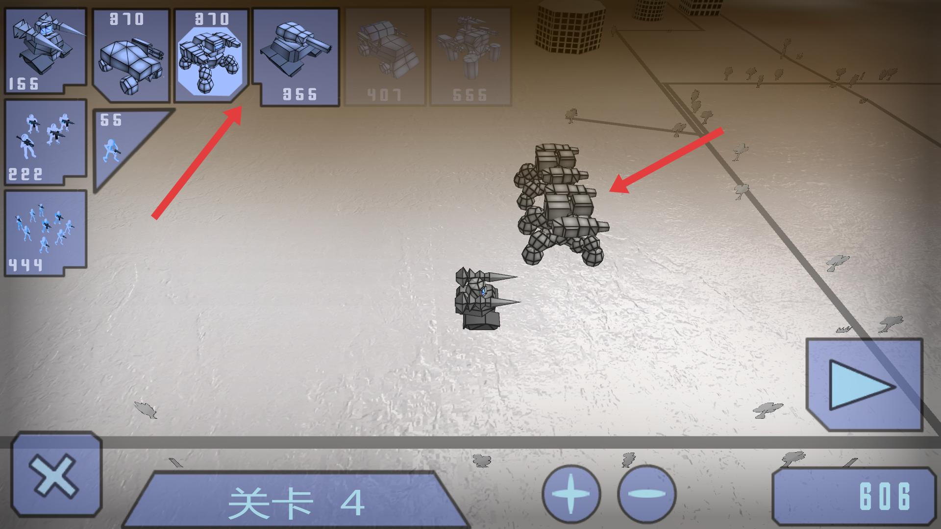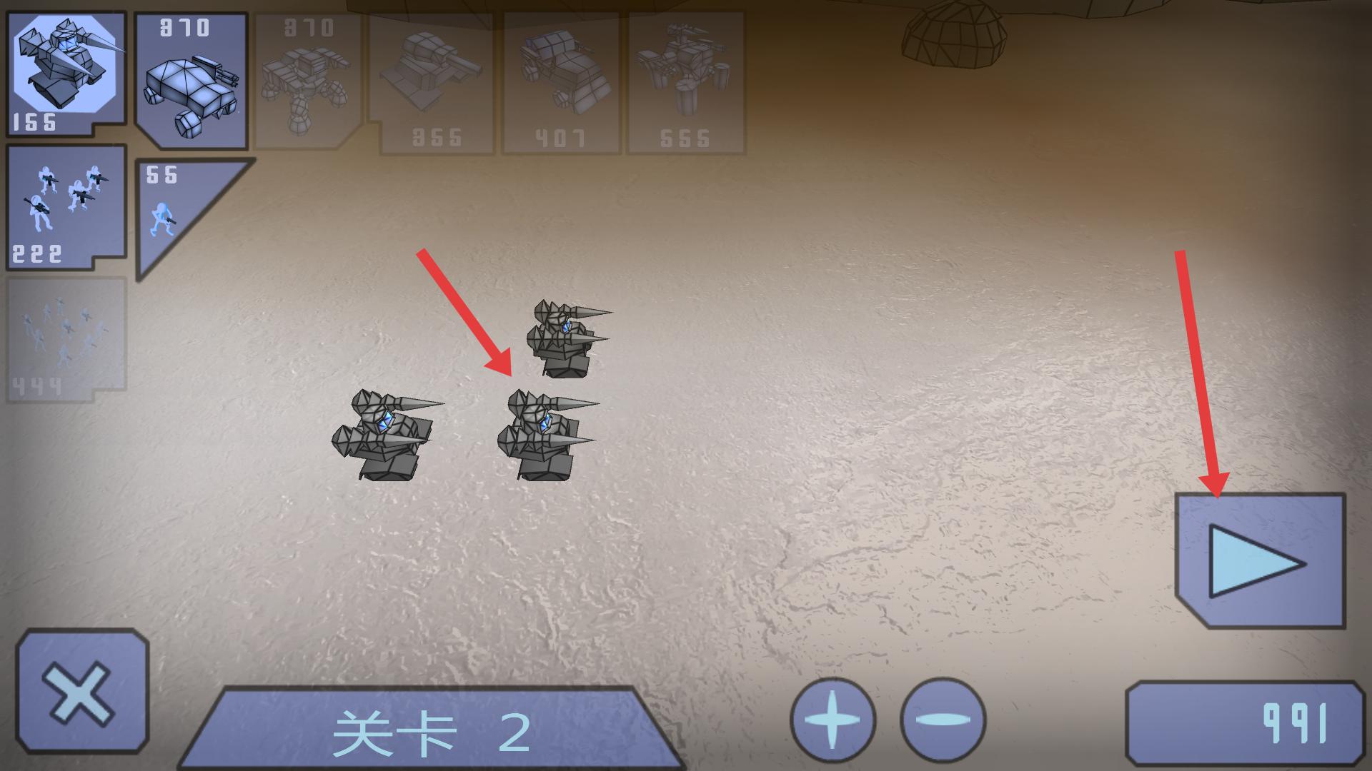 2、在關卡2,可部署機甲類單位,部署完成后,點擊右側前進按鈕,讓單位進入戰場,參與戰斗。