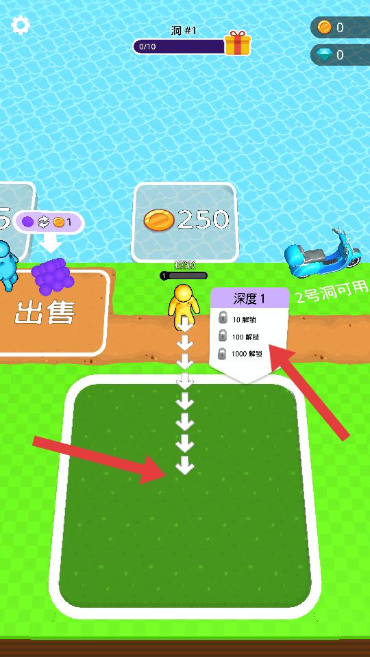 1、核心挖掘操作:單指滑動控制角色移動方向,長按觸發連續挖掘動作,注意觀察土層顏色變化判斷挖掘難易程度與潛在資源分布。