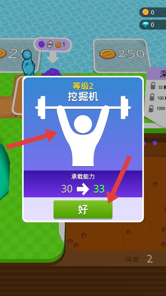 3、能升級挖掘機,提升其承載能力等屬性,讓挖掘和運輸資源更高效,助力游戲進程。