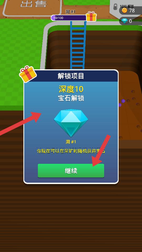 4、當挖掘達到一定深度,會解鎖寶石等新內容,在采礦時可隨機獲得寶石,豐富游戲收獲。