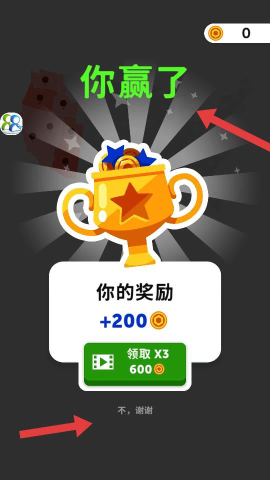4、成功爭奪領土獲勝后,會顯示你贏了,還能獲得獎勵,可選擇領取或不,謝謝,為后續關卡積累資源。