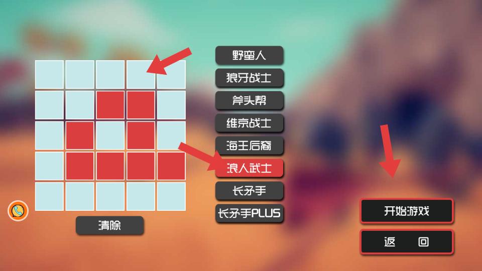 2、選好關卡后,進入士兵布置界面,能選擇野蠻人,狼牙戰士等不同士兵,布置到方格里,準備戰斗。