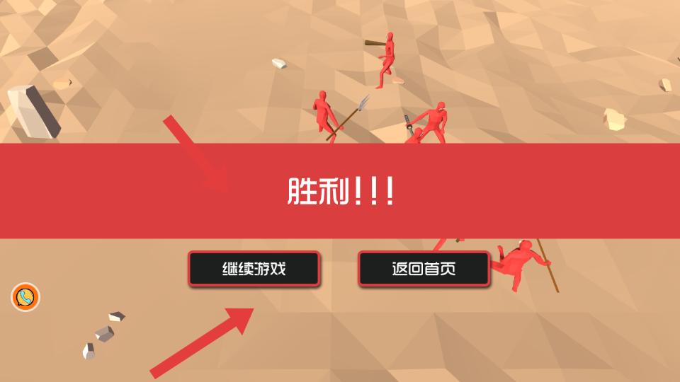 4、成功擊敗敵人后,會顯示勝利,可選擇繼續游戲挑戰下一關,或返回首頁,重新選擇關卡。