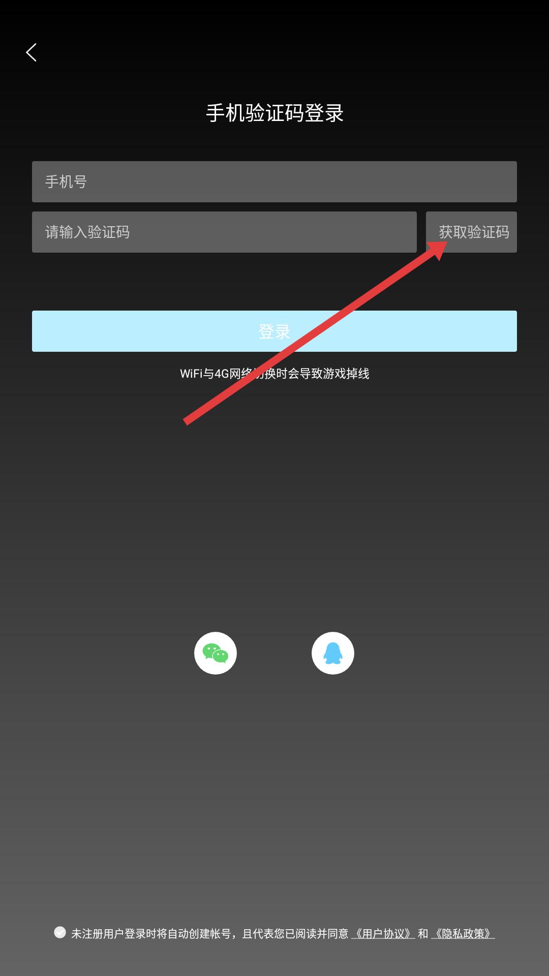 3、手機驗證碼登錄界面,輸入手機號后點擊獲取驗證碼,也可選擇微信或QQ方式登錄,完成賬號登錄操作。