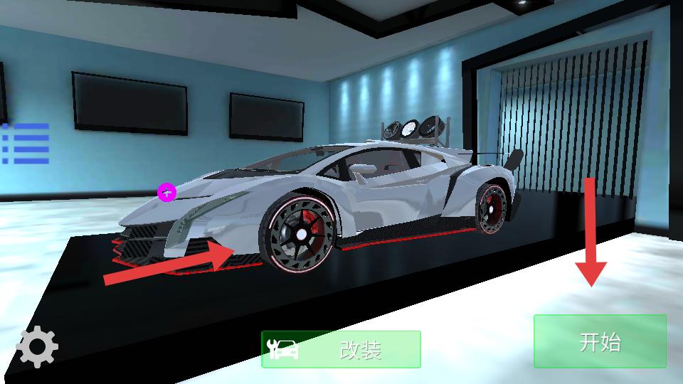 1、進入游戲,可看到展示的豪車,點擊開始,進入模式選擇界面,準備開啟駕駛體驗。