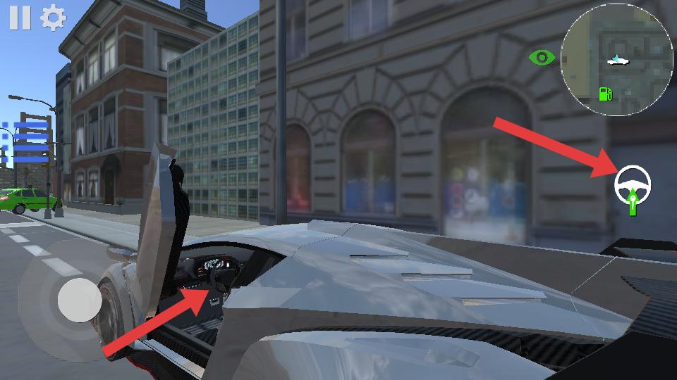 3、進入城市等駕駛場景,能看到車輛和建筑,點擊方向盤等控制按鈕,操控豪車在道路上行駛。