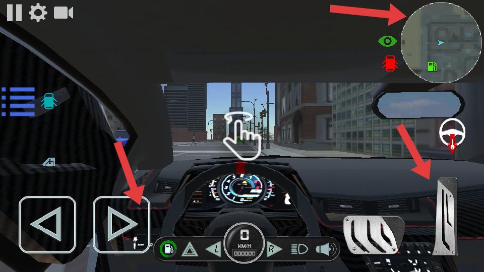 4、駕駛時,通過界面上的前進等按鈕控制車輛行進,借助小地圖了解位置,到城市中自由駕駛或完成競賽。