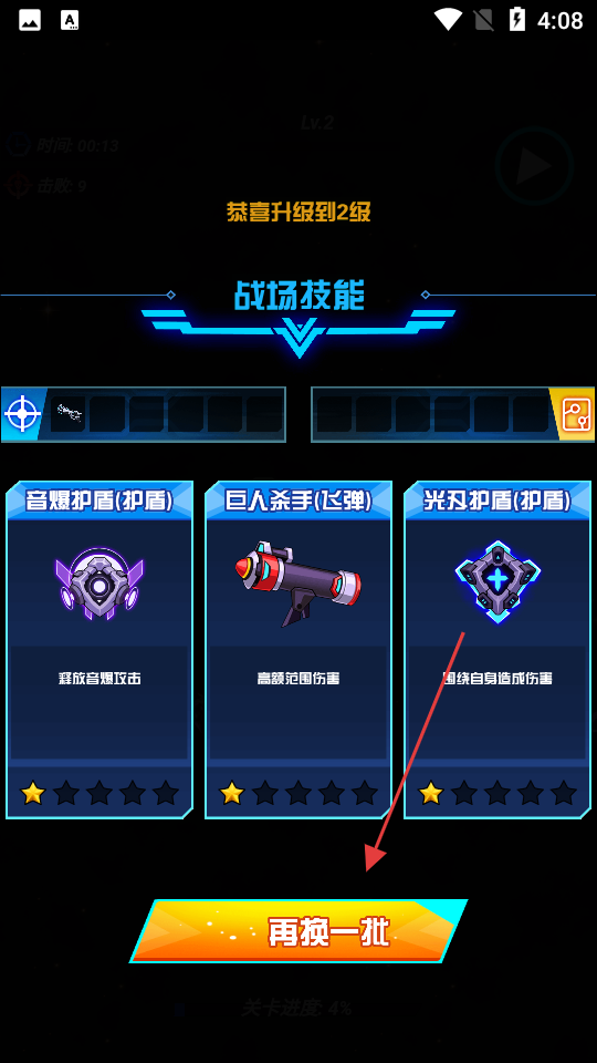 3、升級后出現戰場技能,若不滿意可點【再換一批】,選適配技能助力戰斗。