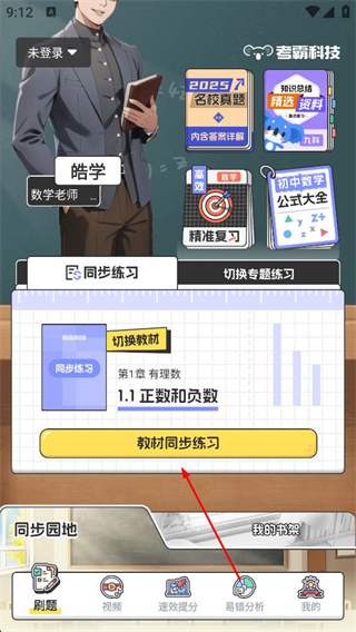 1、打開軟件進入主界面,查看同步練習板塊,選擇切換教材按鈕,選定對應教材后點擊教材同步練習,進入學科練習頁面。