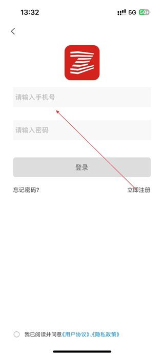 1、打開該公考學習APP,進入登錄頁面,在對應輸入框填寫手機號和密碼,勾選相關協議后點擊登錄,完成賬號登錄流程。