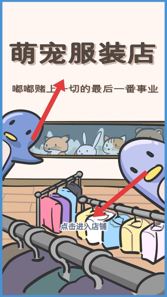 1、進入游戲,看到萌寵服裝店的界面,點擊進入店鋪,就能開啟經營萌寵服裝店的旅程,準備打理店鋪。