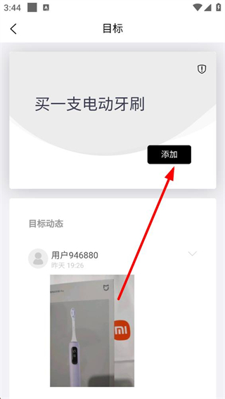 4、進入目標詳情頁后,頁面會顯示對應目標內容,點擊頁面中的添加按鈕,即可將該目標加入個人清單,同時還能查看其他用戶的目標動態內容。