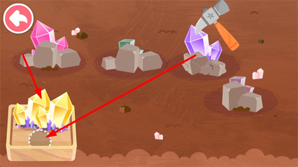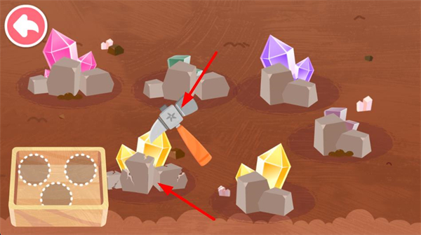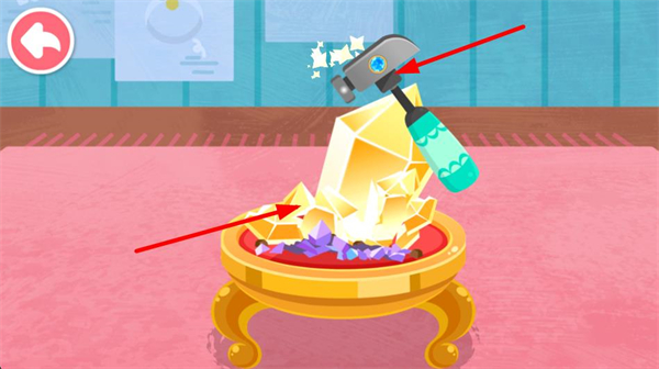 4、進入加工場景,把收集的寶石放入容器,使用升級后的錘子工具進行處理,完成寶石的加工步驟推進游戲進程。