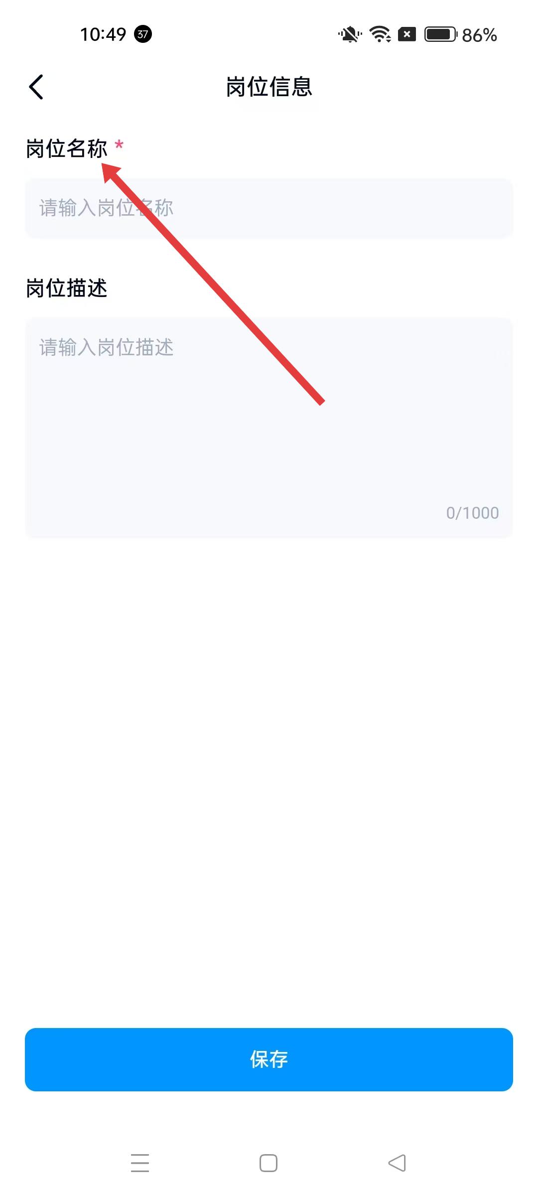 4、崗位信息頁面,輸入崗位名稱和崗位描述后點擊保存,再點擊開始生成按鈕,即可生成AI簡歷。