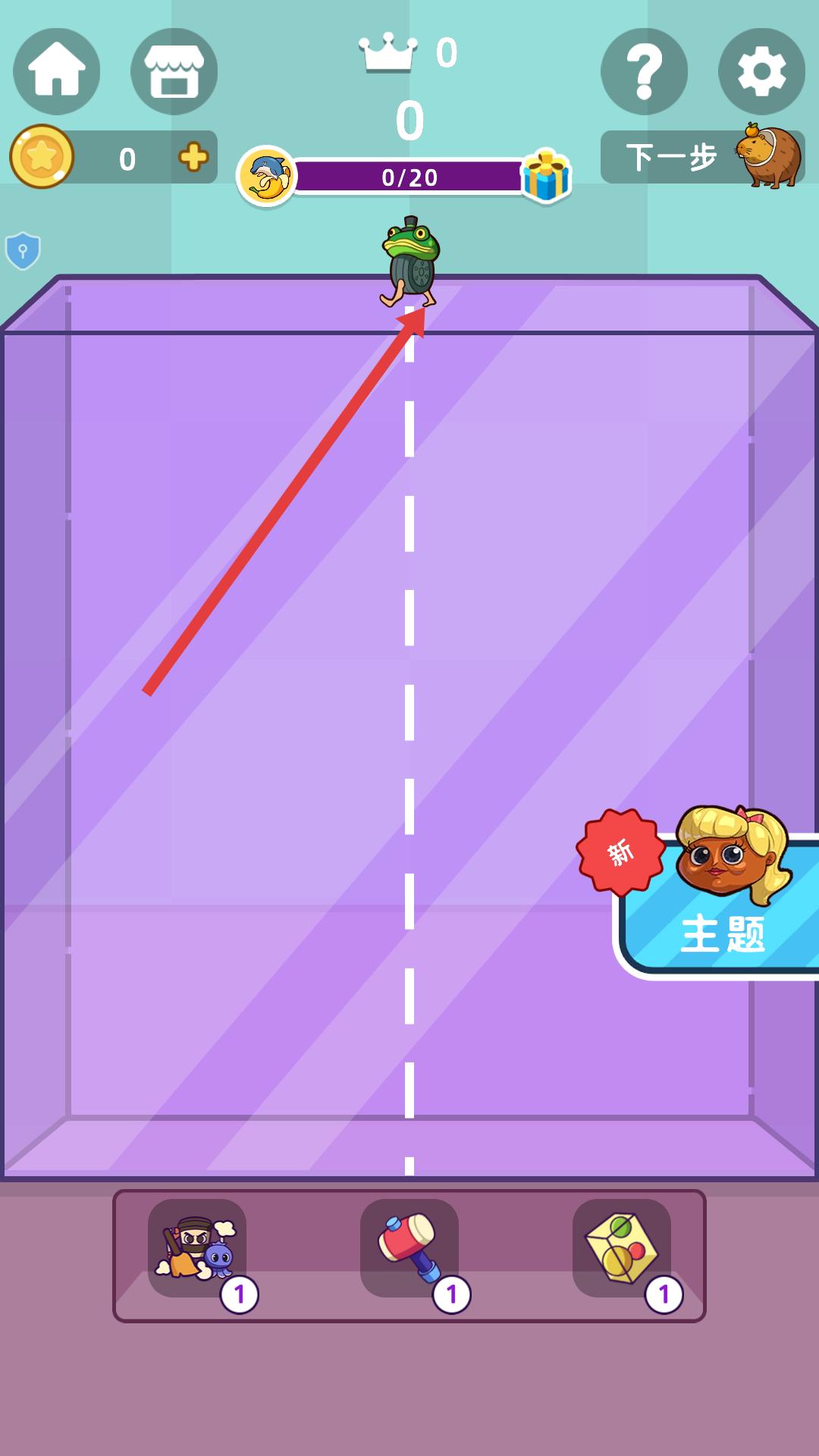 1、操控帶輪胎的青蛙角色,沿著紫色容器內的虛線移動,開啟收集與合成等操作,逐步推進游戲進程。