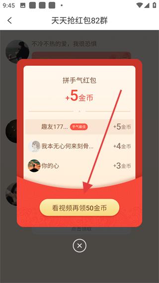 4、在天天搶紅包群里面,群友會發一些紅包,你可以去搶獲取金幣。