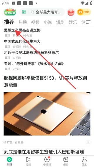 2、在推薦列表中完成一些閱讀任務,完成就可以獲取金幣換取現金。