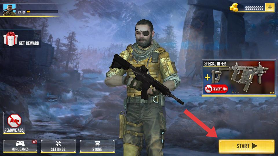 1、進入游戲主界面,點擊START開始游戲,也能領取獎勵,參與特別優惠活動,還可查看其他游戲,設置及商店等選項。
