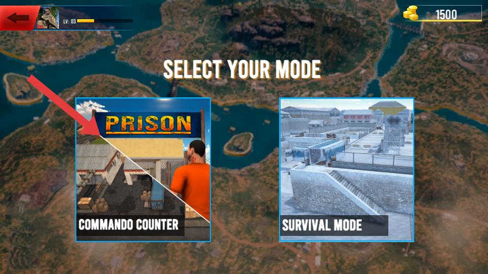 2、進入模式選擇界面,可選擇COMMANDO COUNTER或SURVIVAL MODE模式,不同模式有不同的游戲場景和玩法。