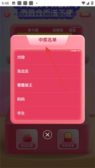 4、抽獎完成后若中獎可點擊中獎名單按鈕查看中獎人員列表,確認自己是否中獎若中獎可按照提示進行領獎操作。