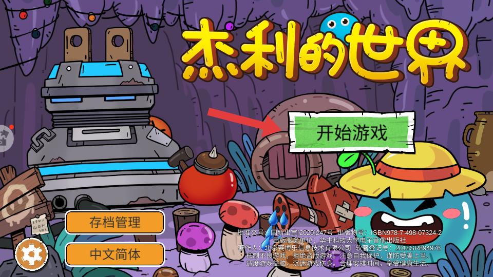 1、進入游戲,點擊開始游戲,也可進行存檔管理,選擇語言等操作,開啟在杰利世界的探索與建設之旅。