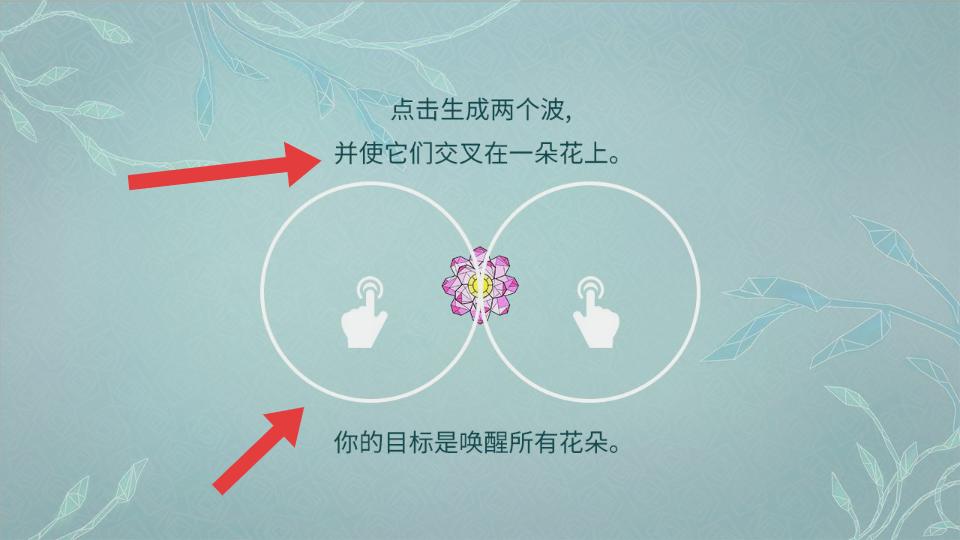3、點擊生成兩個波,讓波交叉在花朵上,以此喚醒花朵,目標是喚醒所有花朵,完成關卡任務。