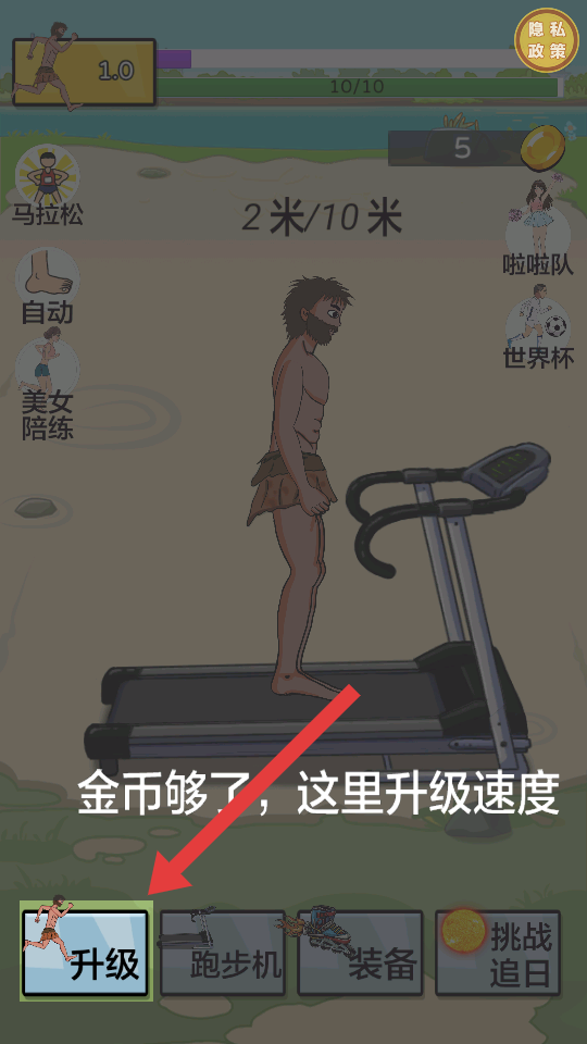 2、當賺取的金幣足夠時,點擊下方升級按鈕,可提升人物跑步速度,讓后續跑步更高效。