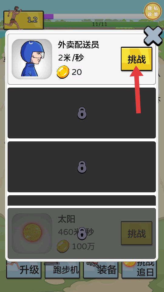 3、完成升級后,可挑戰不同對手,比如外賣配送員,點擊挑戰按鈕,就能開啟與該對手的跑步競賽。