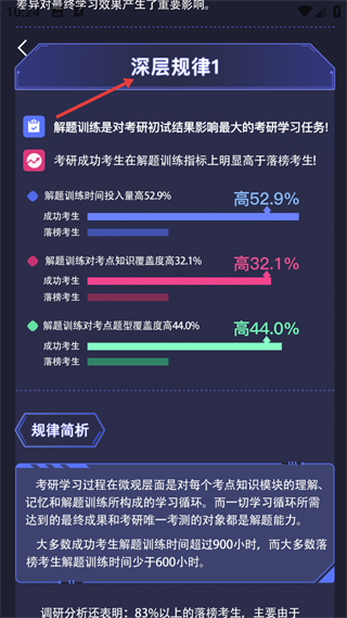 3、軟件依托大規??佳姓{研,分析2017-2019年考生數據,揭示影響考研成敗的核心學習規律。