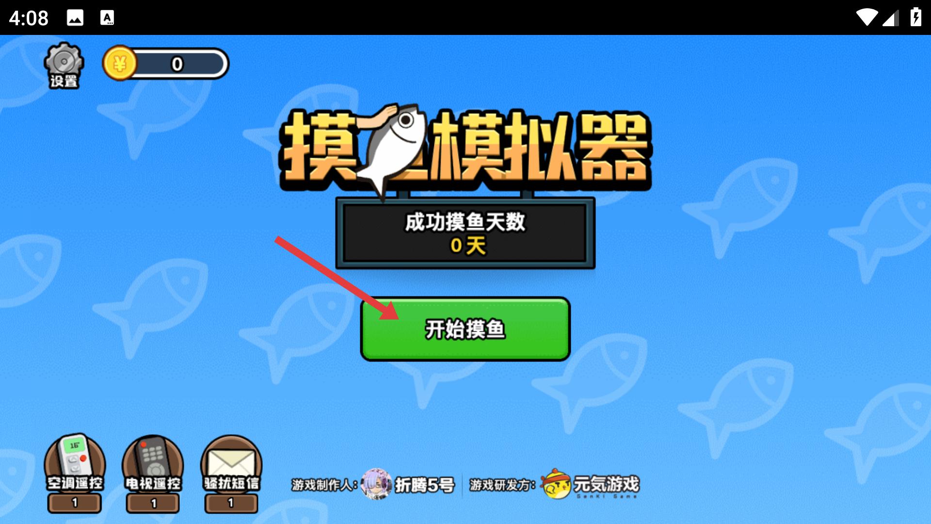 1、點擊開始摸魚,進入摸魚模擬器游戲,開啟摸魚挑戰,目標是成功摸魚,積累摸魚天數。