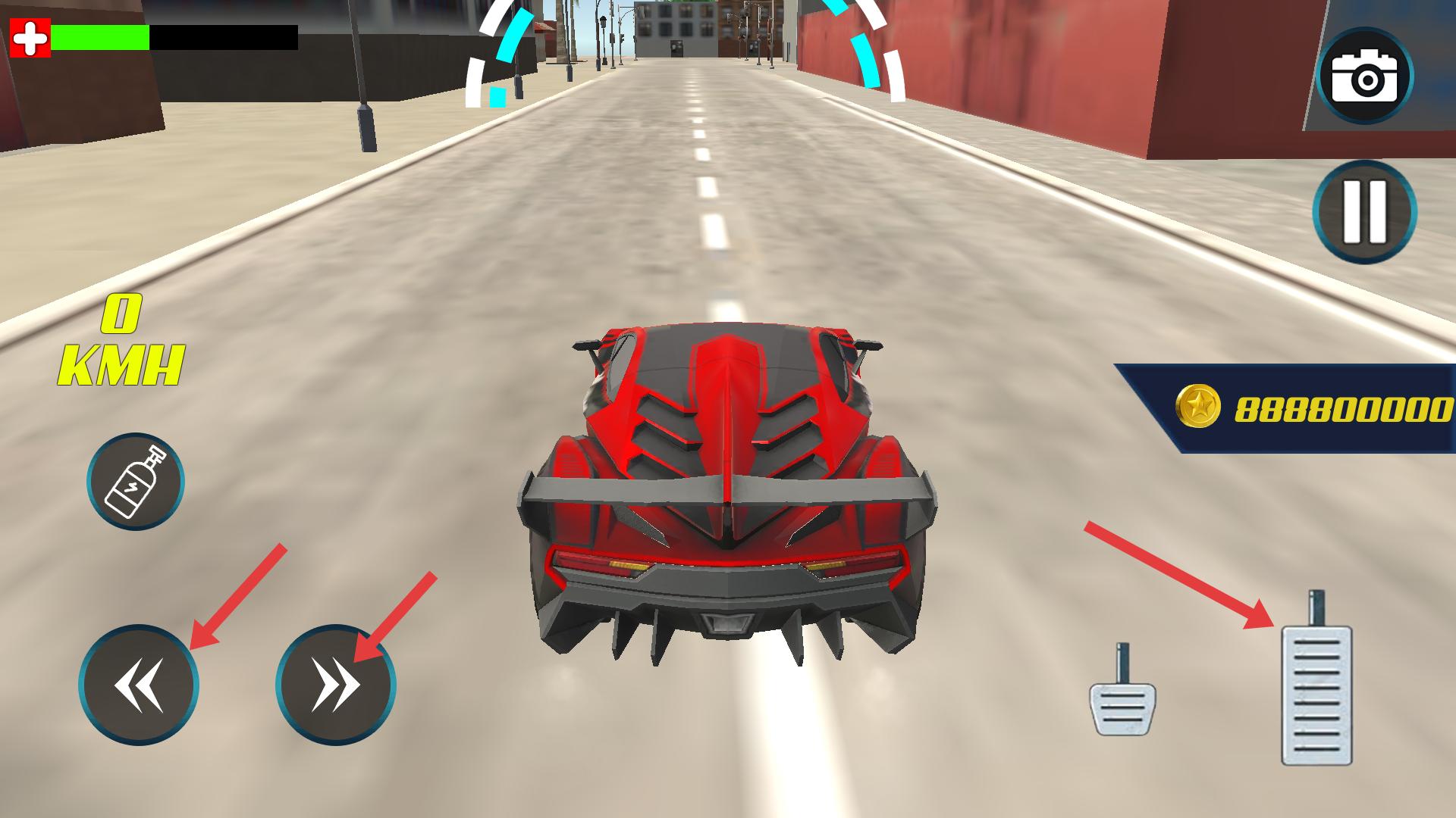 2、駕駛紅色跑車在道路上行駛,可通過左側方向鍵控制車輛轉向,右側踏板控制加速,注意觀察車速等信息。